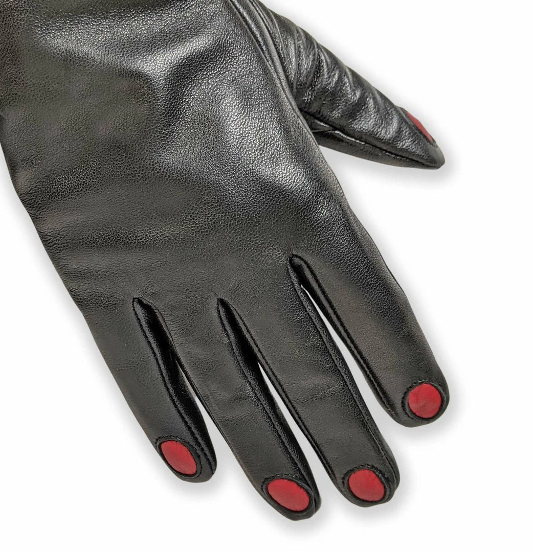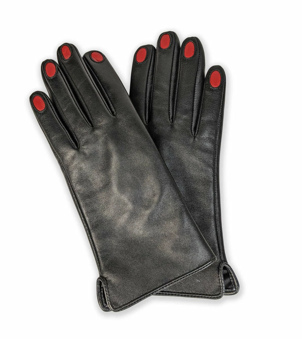 Based on high fashion examples from the 1930s, these elegant gloves feature a “manicure” in blood-red adding an unexpected quirky surrealist touch. Perfect for the glove wearer who likes to make a statement everywhere they go. Genuine leather gloves, butter soft and comfortable featuring a thin lining for comfort and durability that can be dressed up or down.