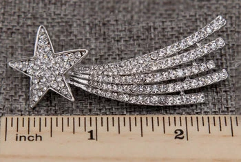 The vintage style Cassiopeia shooting star brooch is lovely on its on or even better worn in a pair. Brooch is made from rhinestones and alloy metal.