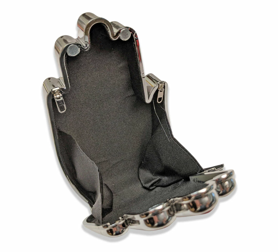 This is a most unusual handbag. Itβs lightweight, but it can still hold all of your essentials for a night out on the town. The bag features hand-painted fingernails complete with a detectable chain that can be used to wear the bag over your shoulder. A magnetic clasp keeps your contents safe and secure. Also available in gold-tone.