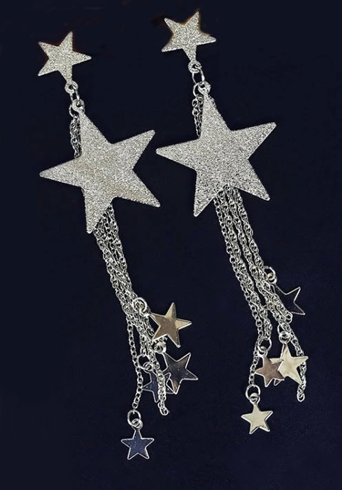 The “Isla” earrings feature two large stars with a tassel of falling stars. A great statement earring for evening or day.