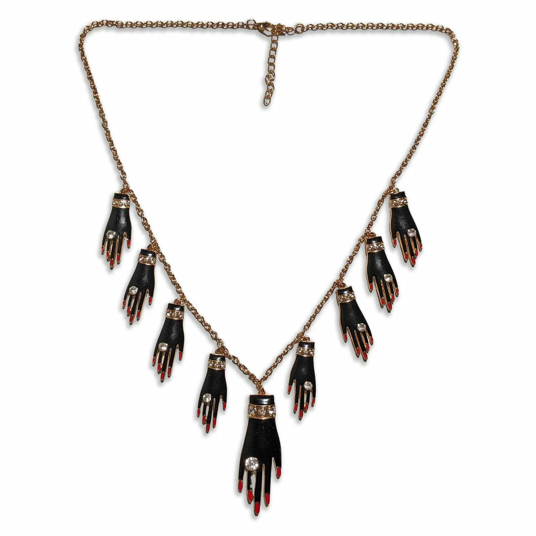 The gold-tone Regan hand necklace is a dramatic statement piece, perfect for the gal that loves vintage elegance mixed with 1940s style surrealist quirk and charm.