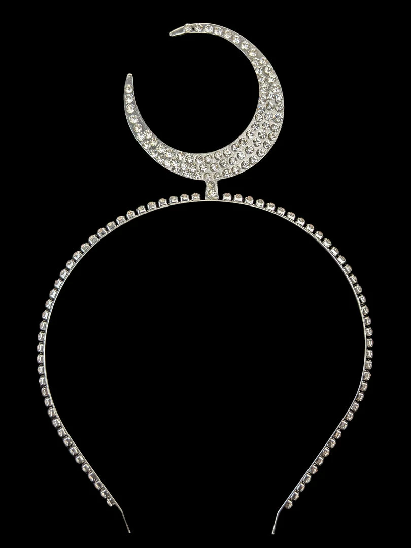 The crown exudes a subdued elegance, while adding a touch of charm and whimsy to your outfit. Based on a design from the mid-19th century, yet looks good worn with a vintage outfit or your basic little black dress. It’s lightweight and comfortable – ideal for all evening or all day wear at your next dress up event. Features a crescent moon with pave rhinestones and a band with prong set rhinestones.